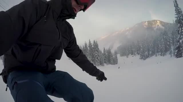 > Snowboarder Holding Action Camera Under Chairlift at Mountain Resort