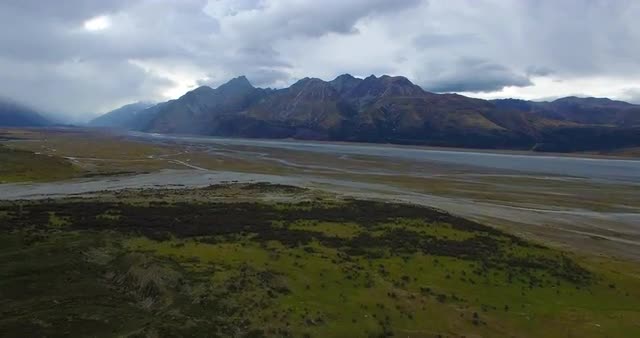 NEW ZEALAND – MARCH 2016 : Aerial shot over Glentanner Field on a beautiful day with amazing landscape in view
