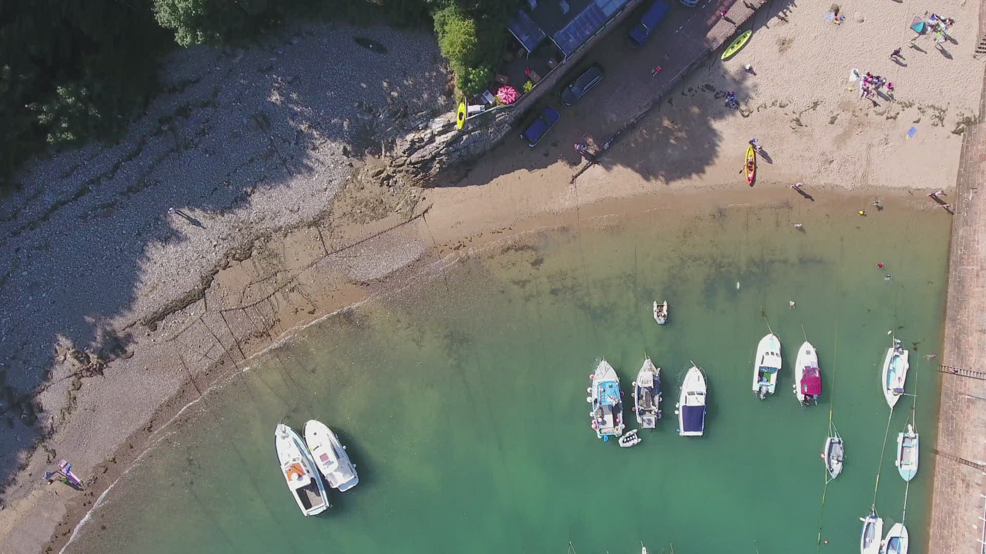 Aerial footage of village on the water