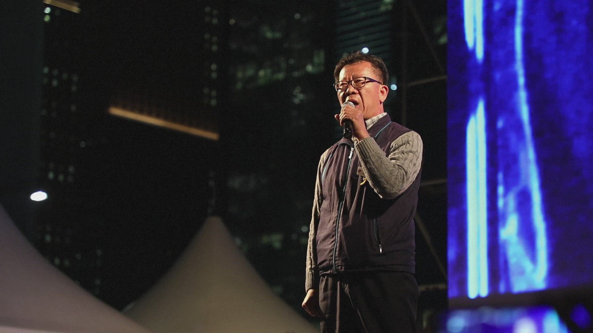 Video shot of tall buildings in city centre at night in Seoul