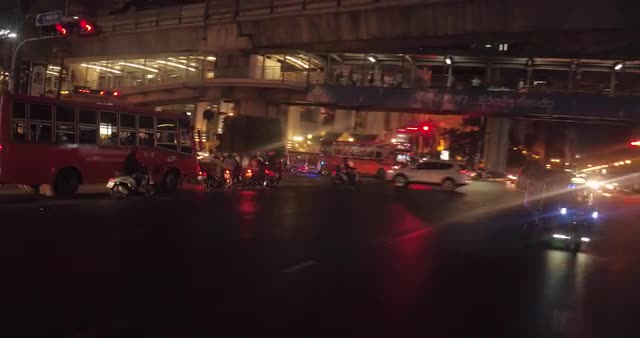 > Drive through street view in central Bangkok at night