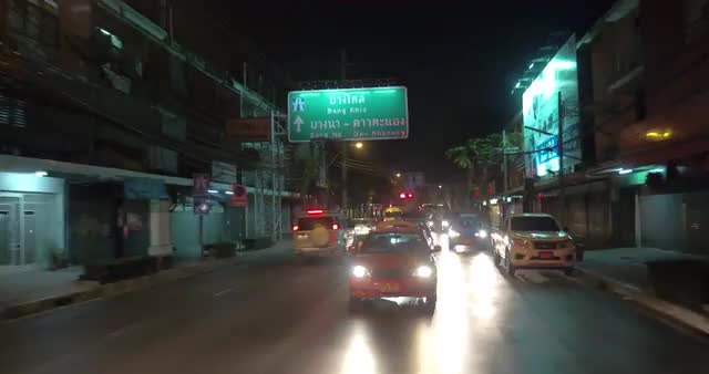 BANGKOK, THAILAND, MARCH 2017: Car view timelaps trough streets of Bankok at night