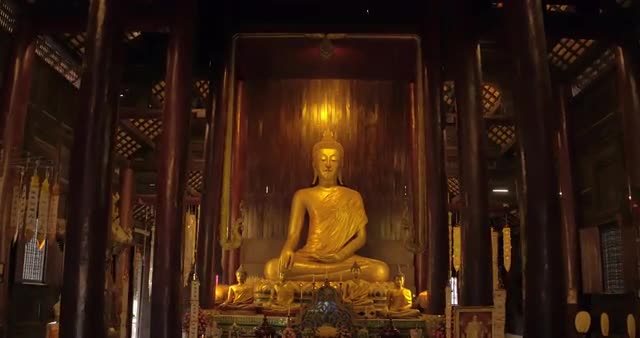 > Interior of Temple in Chiang Mai, with Buddah statue