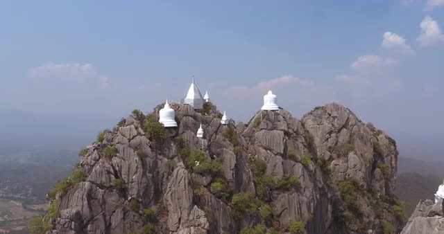 > Aerial view over Wat Chalermprakiat, a mountain top Temple in Lampang
