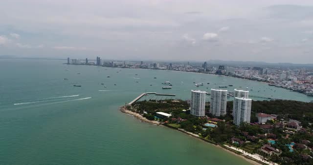 PATTAYA, THAILAND, MARCH 2017: Aerial View over Pattaya coastline
