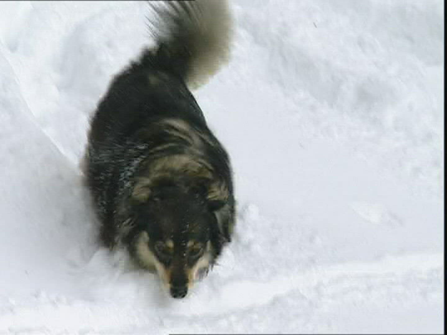 > Wolf running through snow