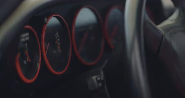 Clsoe-up of car gauges and steering wheel