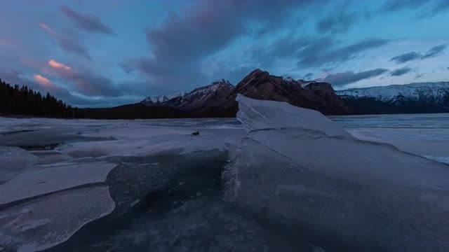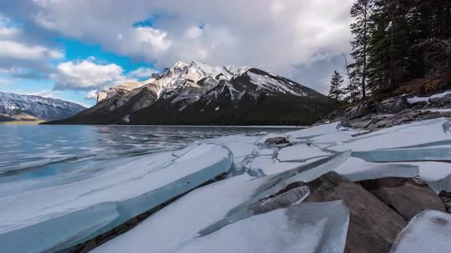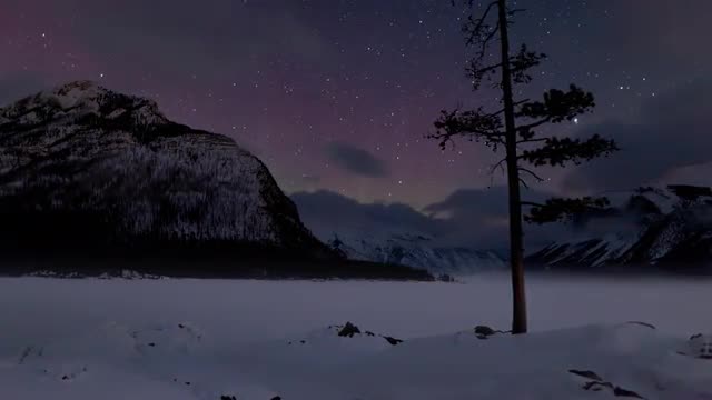Static timelapse sequence showing lonley tree at Lake Minnewanke in Banff Nationalpark, Alberta, Canada