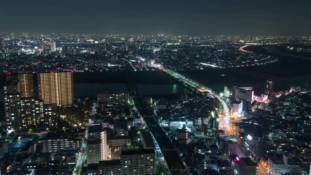 Tokyo, Japan, Timelapse - Tokyo s city traffic at Night from the Ichikawa I-link town Observation d