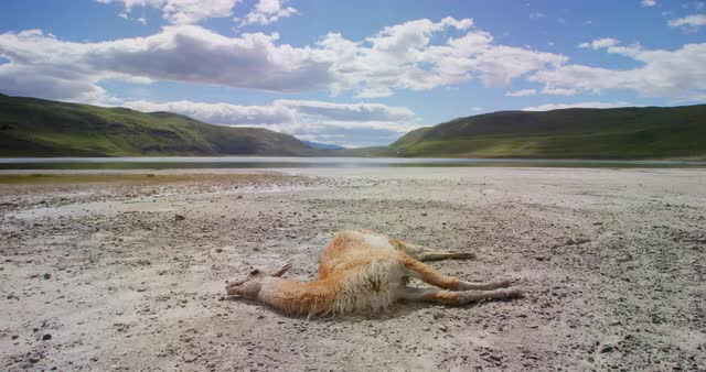 > Guanaco carcass next to Amarga Lagoon, Patagonia.