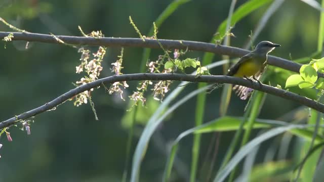 Tropical kingbird preening on perch_backlit 4k60.mov