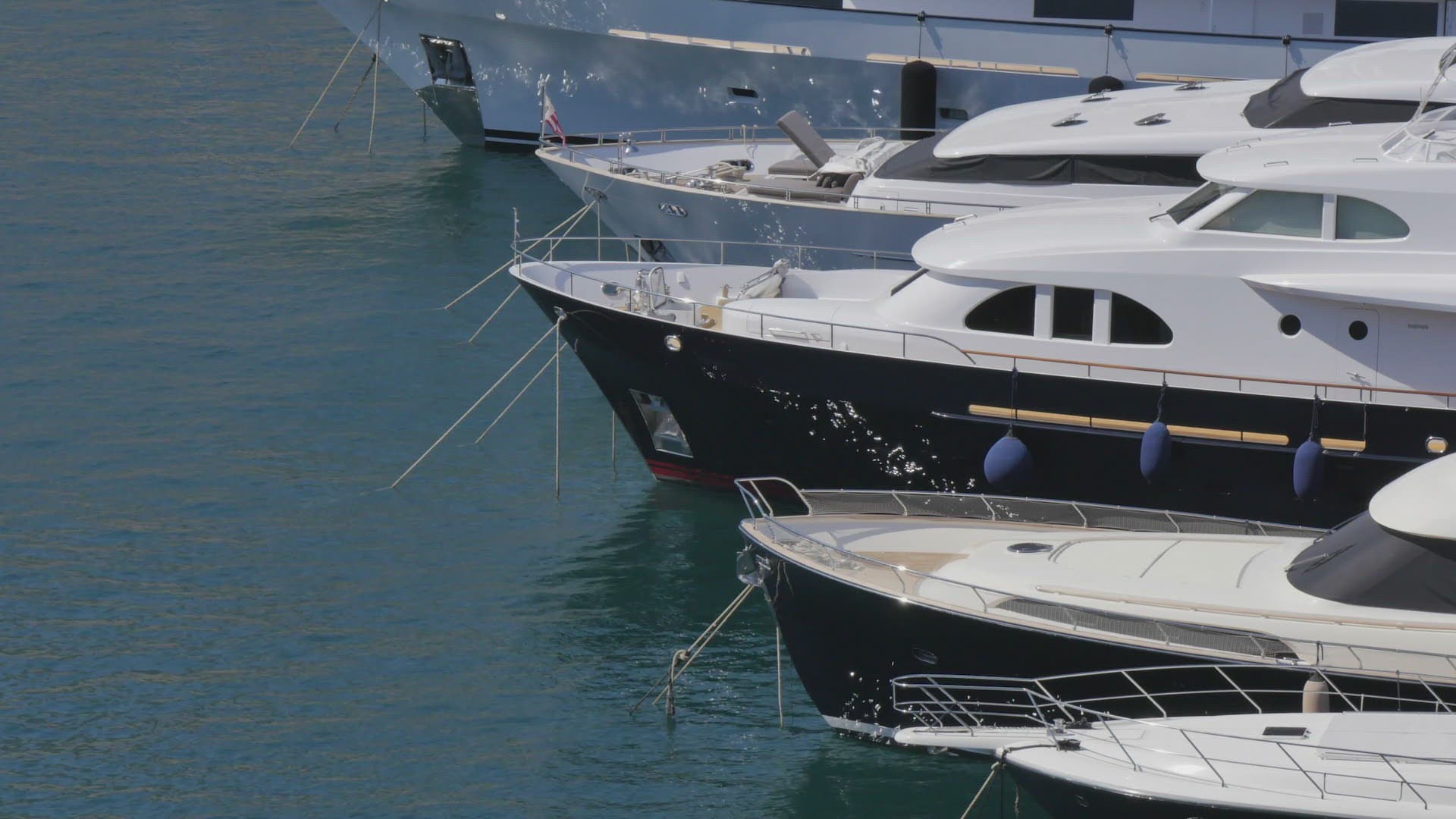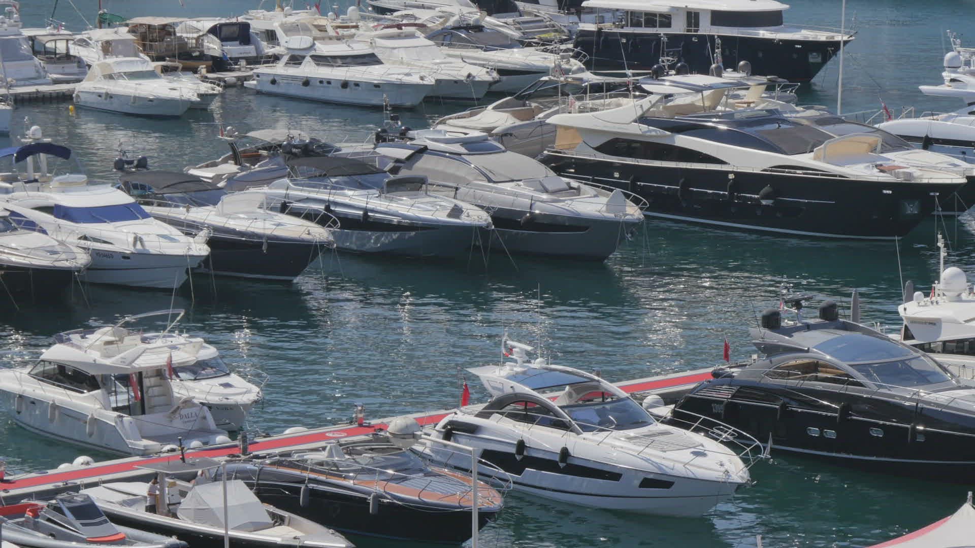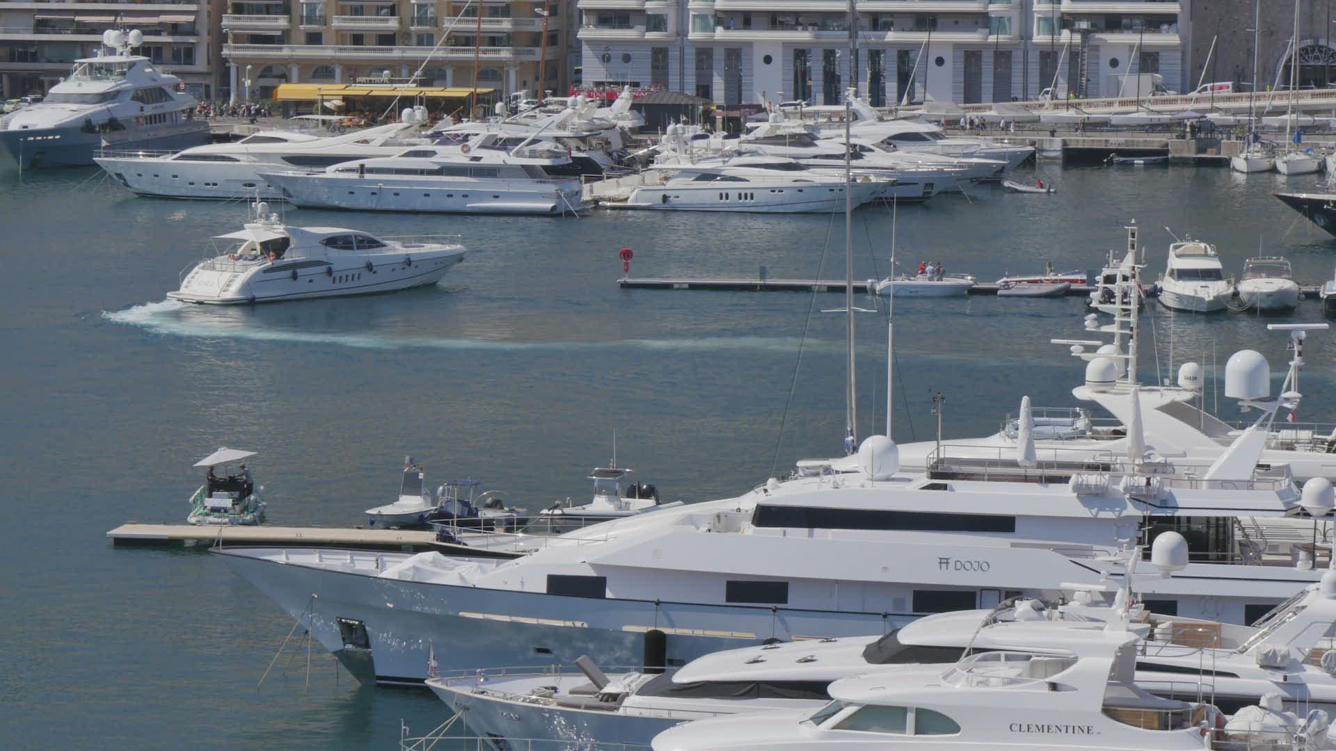Aerial View Of Luxurious Yachts And Megayachts Lined Up In The Monte-Carlo Harbour