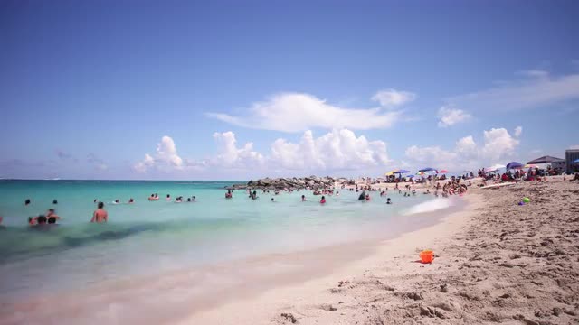 Timelapse of Dubai fountain near Dubai Mall on a sunny day.