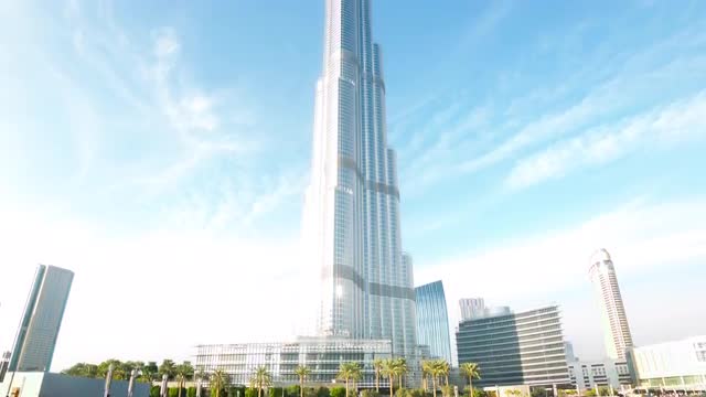 4K UltraHD Timelapse in Dubai, United Arab Emirates. Timelapse day translation to night view Dubai dancing fountain show from Burj Khalifa, Dubai