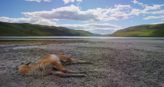 > Guanaco carcass next to Amarga Lagoon, Patagonia.