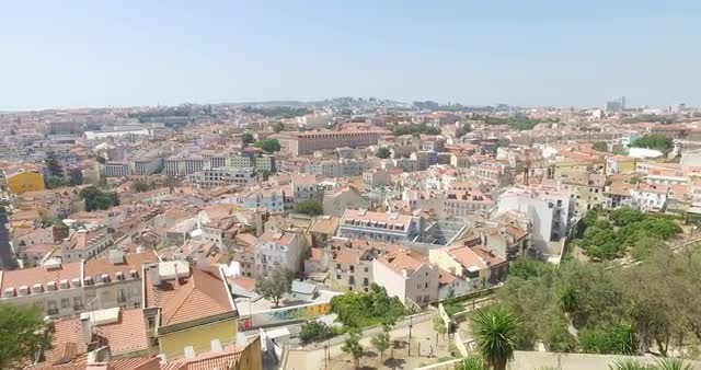 LISBON – AUGUST 2016 : Video shot from amazing viewpoint on a sunny day with people and cityscape in view