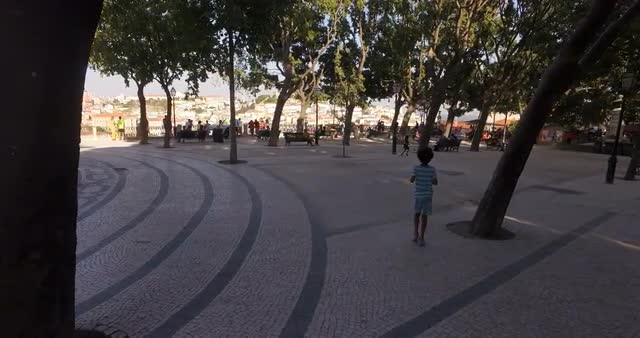 LISBON – AUGUST 2016 : Video shot from amazing viewpoint on a sunny day with people and cityscape in view