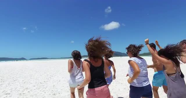 WHITSUNDAY ISLANDS – FEBRUARY 2016 : Video shot of people running towards ocean at Whitehaven Beach on a beautiful day