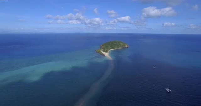 Aerial shot over beautiful island on a sunny day