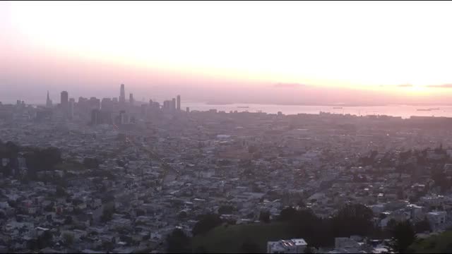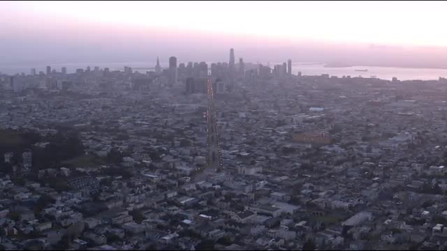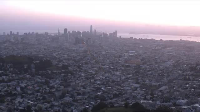 > Wide aerial tracking shot of a community Park in San Francisco