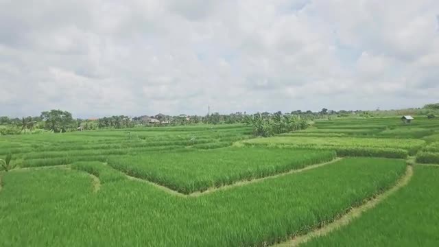 Town near the sea with farmlands, rice terrace field, trees. Aerial view of Tropical landscape Philippines,Luzon.