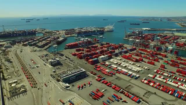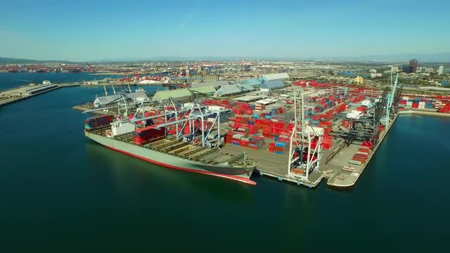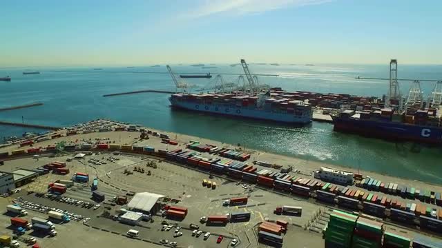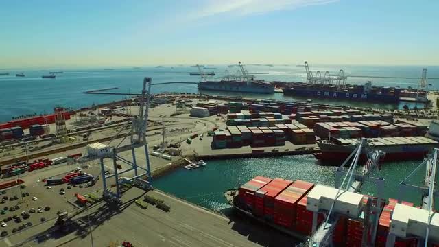 Aerial view of shipyard with ships in docks, cranes and warehouses. Batangas Shipyard, Philippines, Luzon.