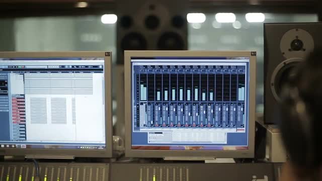 532662 - a Sound Engineer Using a Mixing Desk or Mixing Console to Mix a Track in a Recording Studio. With Le