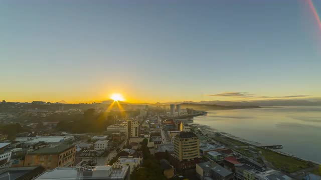 Puerto Montt, Region de Los Lagos / Chile - 05 15 2018: Sunrise time lapse in autumn
