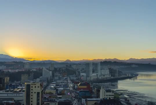 Puerto Montt, Region de Los Lagos / Chile - 05 15 2018: Sunrise time lapse in autumn