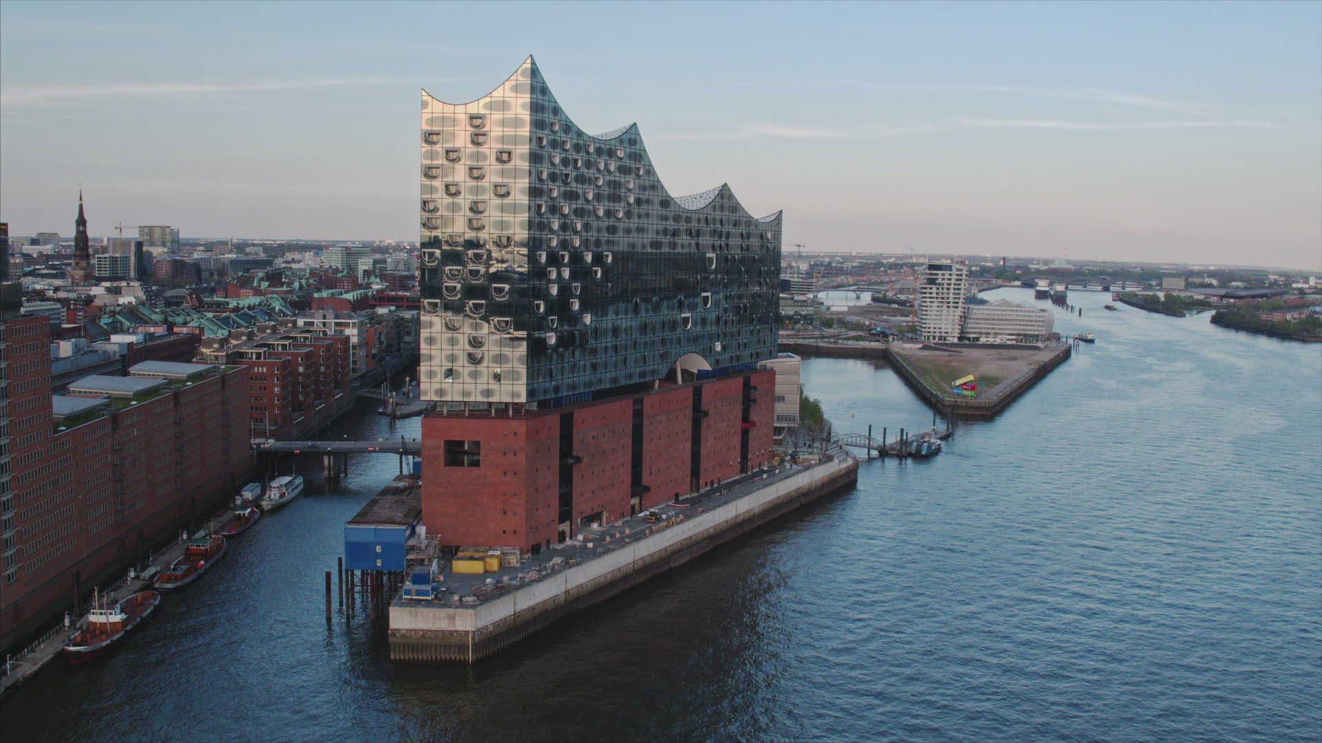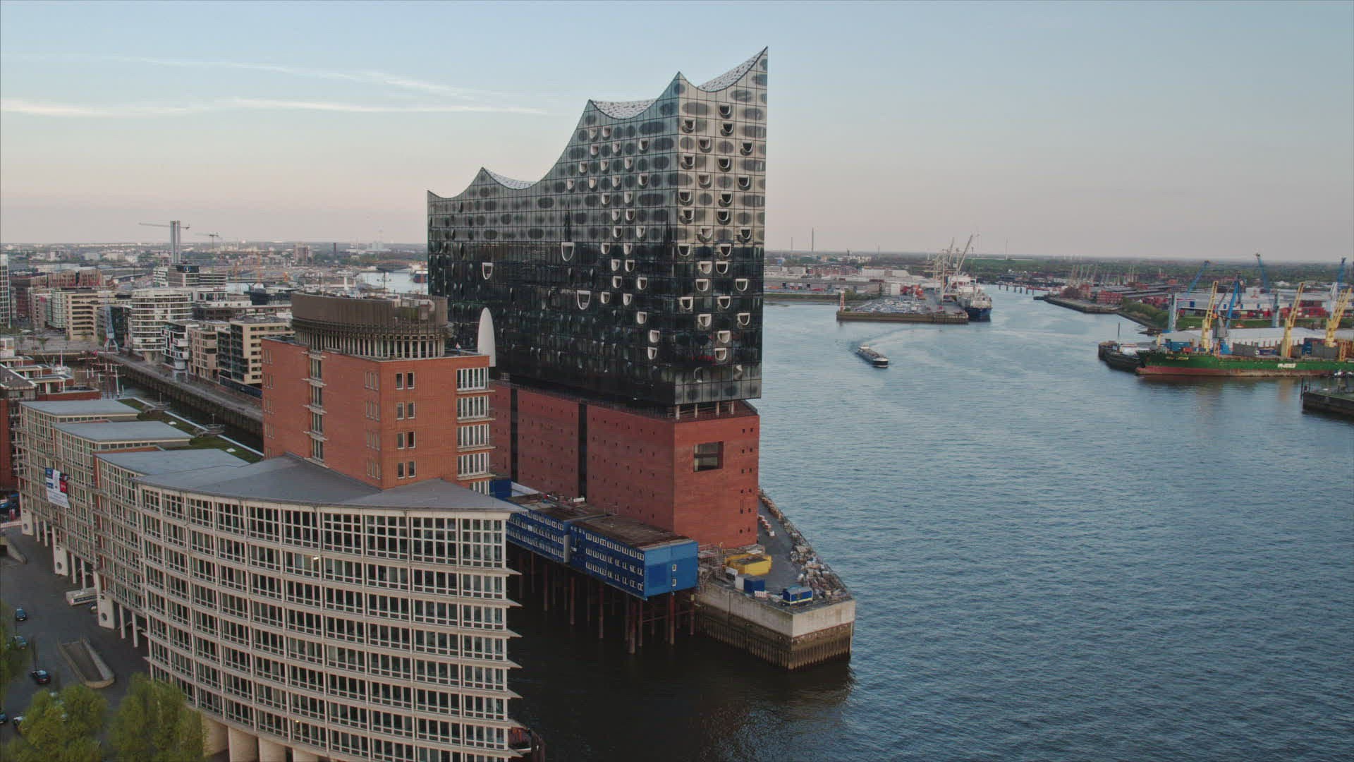 Drone lapse/Hyper lapse of the port of Hamburg with Elbphilharmonie
