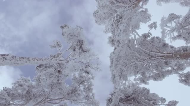 > Clouds passing behind frozen trees