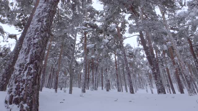 991982 - Bright sun on cloudy day among frozen trees on the mountain