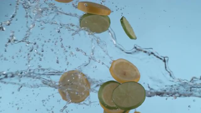 > Sliced lemon and lime in slow motion, shot with Phantom Flex 4K at 1000 frames per second