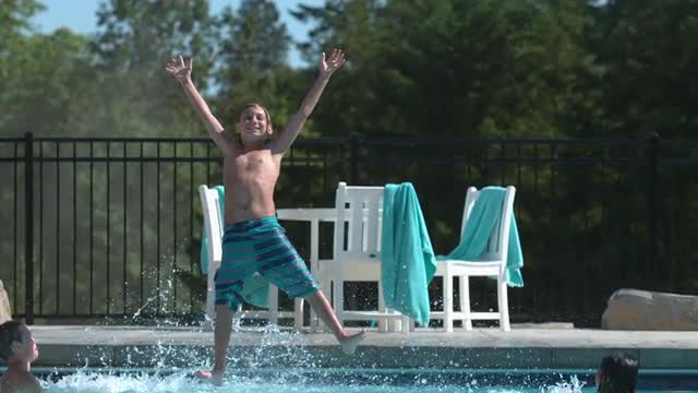 996394 - Kids jumping into pool in super slow motion