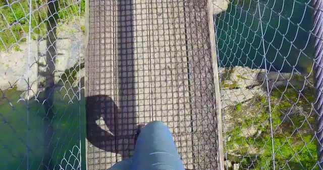 977614 - Video shot of girl walking across bridge on a beautiful day
