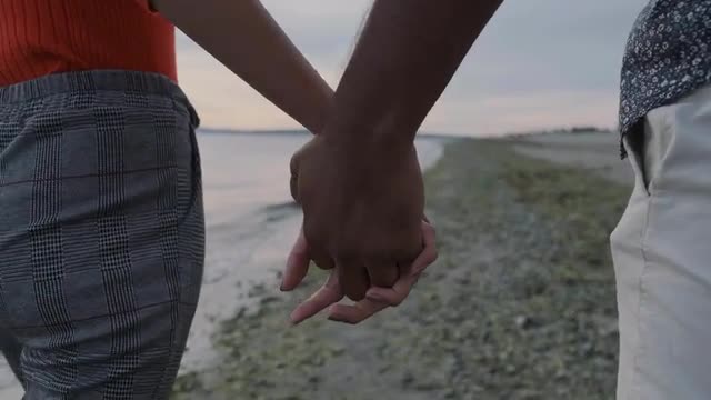313602 - Couple holding hands on a beach at sunset