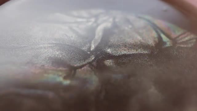 Rainbows ripply across misty and foggy water as the light from a sunset comes in. Various patterns form in the wispy clouds of steam.