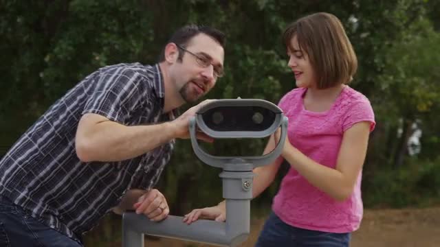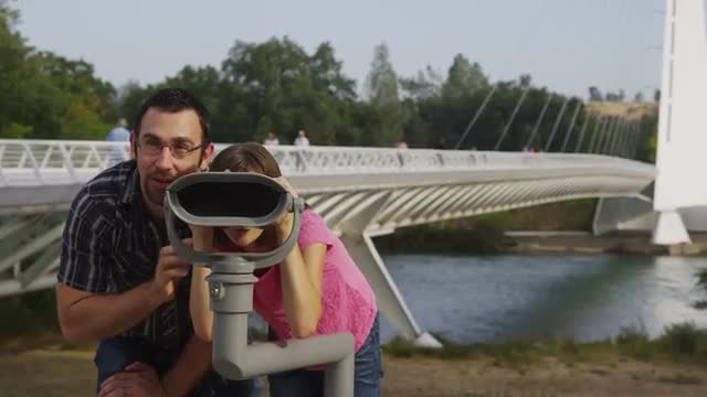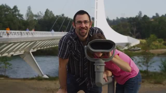 373004 - Father and daughter looking through viewer at Sundial Bridge: Redding, California