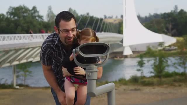 373003 - Father and daughter looking through viewer at Sundial Bridge: Redding, California