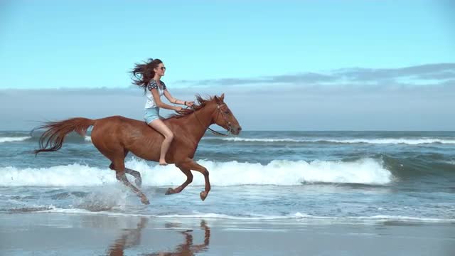 996790 - Super slow motion shof of woman riding horses at beach, Oregon, shot on Phantom Flex 4K