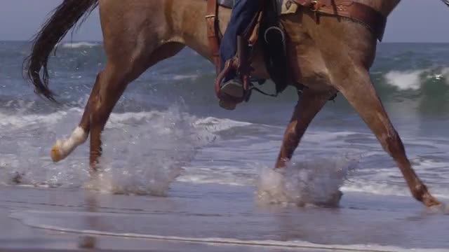 996298 - Woman riding horse through creek in slow motion