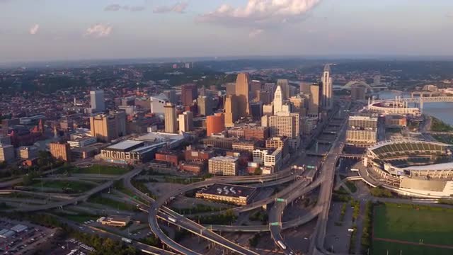 > Aerial view of Cincinnati, Ohio