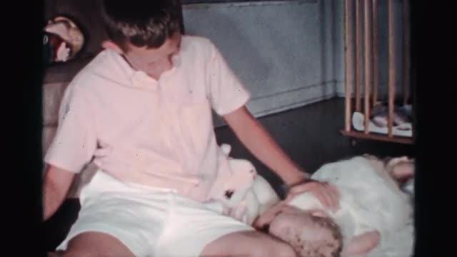 727794 - 1959: a small boy play in our sister in house morning time in a house happy time FLORIDA