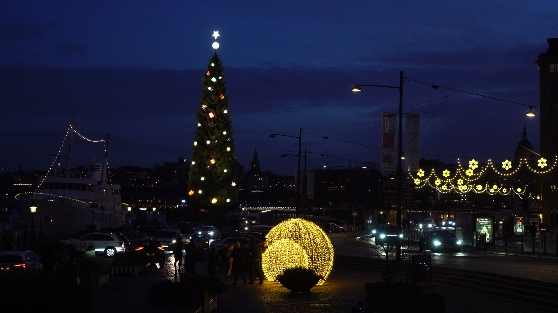 2633937 - Stockholm skyline - evening - traffic - 1.MP4