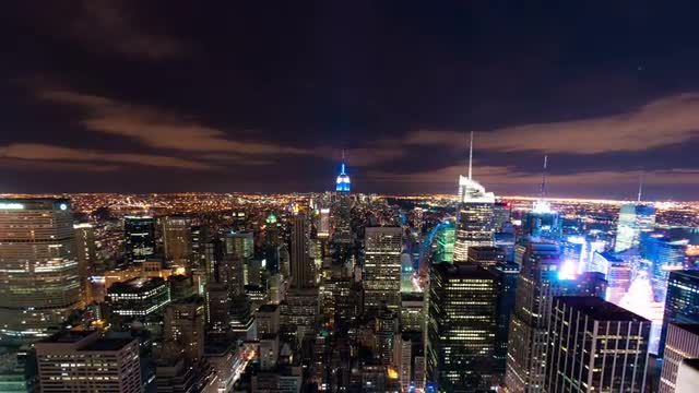 > Circa-2007, 4K time lapse shot of Rockefeller Center ice skating rink in New York City, NY