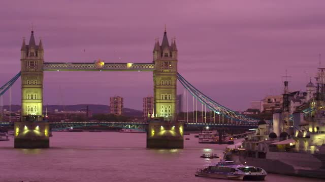 Dallas, Texas circa-2017, Aerial view of Margaret McDermott arch bridge and city at dusk