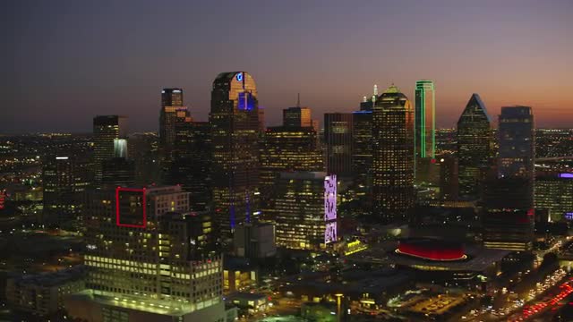 > Dallas, Texas circa-2017, Aerial view of Dallas, Texas at dusk