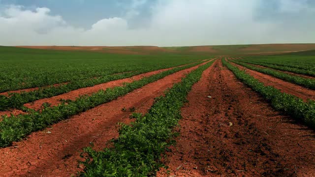 84419 - Stock Video Footage of green rows of crops in Israel.