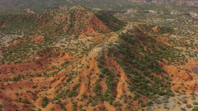1121560 - Flying over red desert ridge and hills in the mars like desert