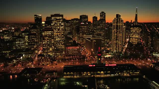 > San Francisco, California circa-2017, Aerial view of Bay bridge and city at dusk